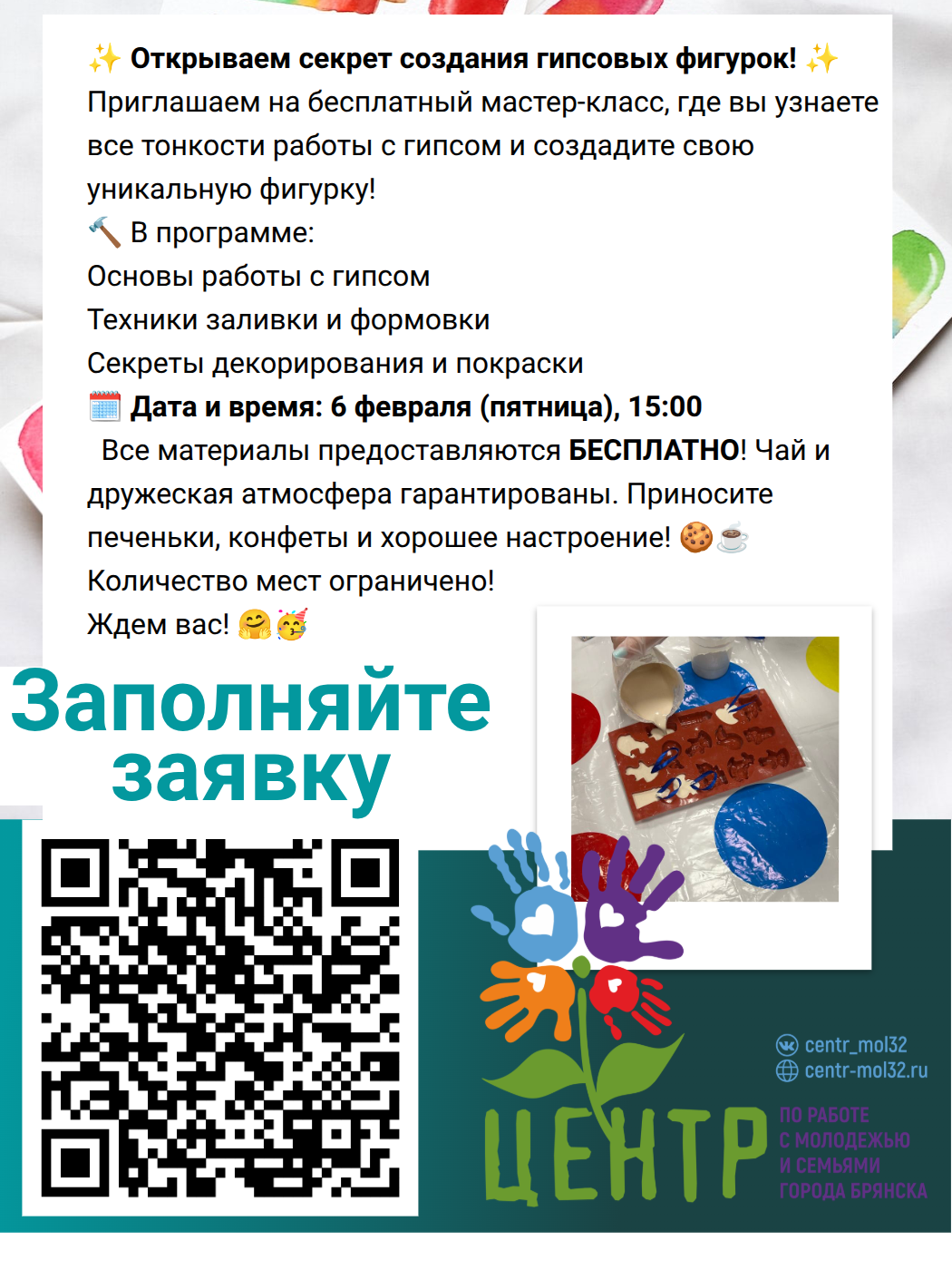 Сертификаты участника будут высылаться электронно по запросу через личные сообщения группы МБУ «Центр по работе с молодежью и семьями города Брянска» или через официальную почту centr-mol32@yandex.ru Не забудьте написать нам!